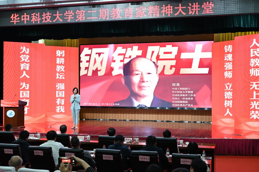 排演的朗诵剧《您是一块千锤百炼的特殊钢》。崔崑院士 在寄语视频中表示,实干是华科大人一以贯之的优良传统,希望广大教师继续弘扬实干作风,始终胸怀“报国”之志、永葆“勤奋”之心,积极投身学校建设与发展事业,为推动社会进步贡献智慧与力量。观众席自发响起的阵阵掌声,既是对崔崑院士作为教育家“为党育人、为国育才、无私奉献、甘为人梯”精神的高度共鸣,更是广大师生对践行职责使命发自内心的再确认。