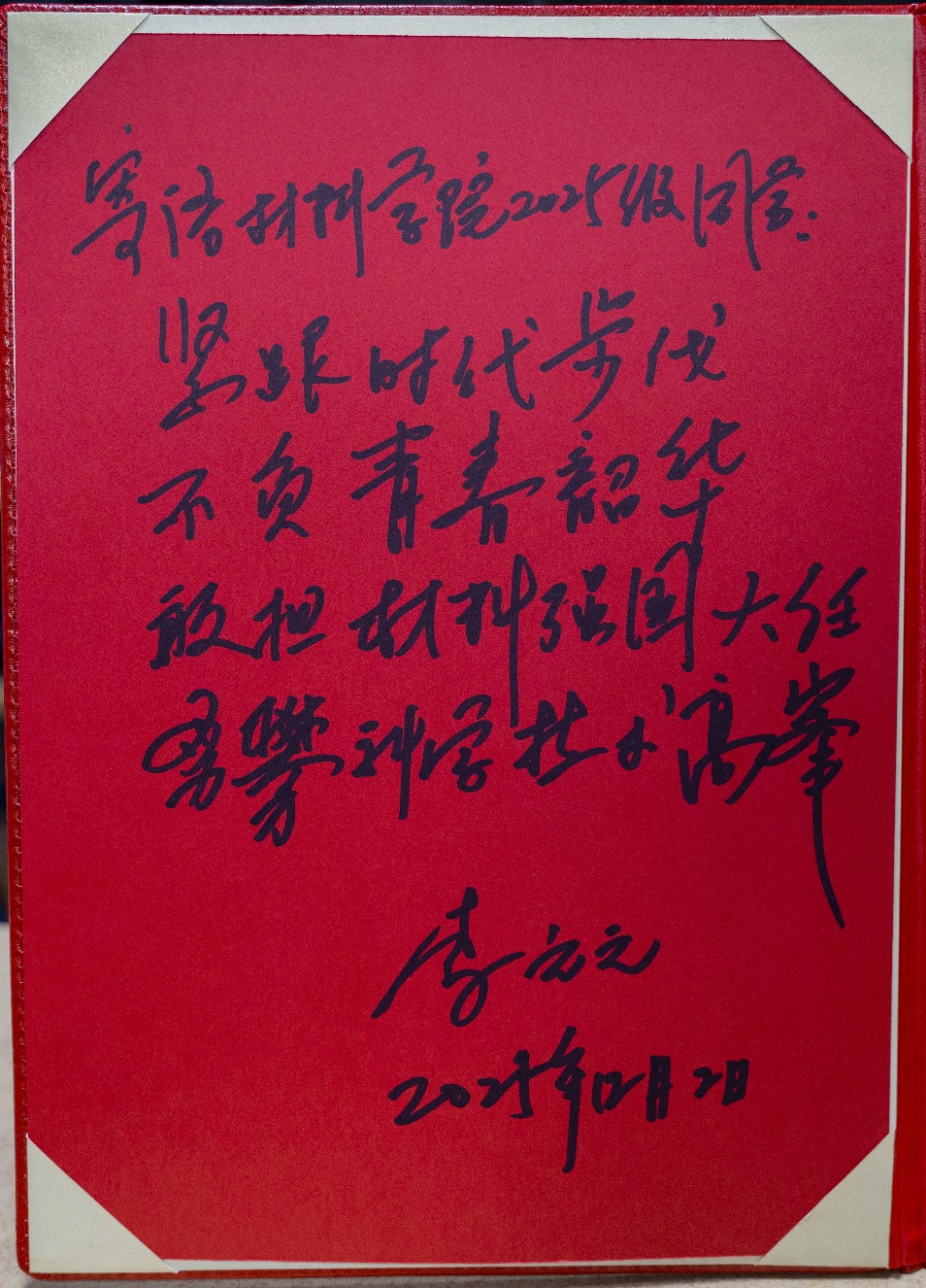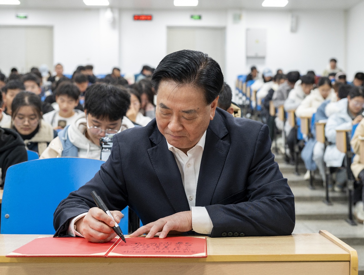 报告会后,李元元院士在同学们的簇拥下签字留念,期望同学们珍惜韶华,在华科校园的求学时光中淬炼成长,努力成为堪当强国建设、民族复兴大任的栋梁之材。